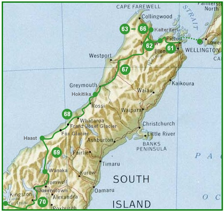 - 67. Tag: Von Kaiteriteri nach Hokitika (ca. 425 km)