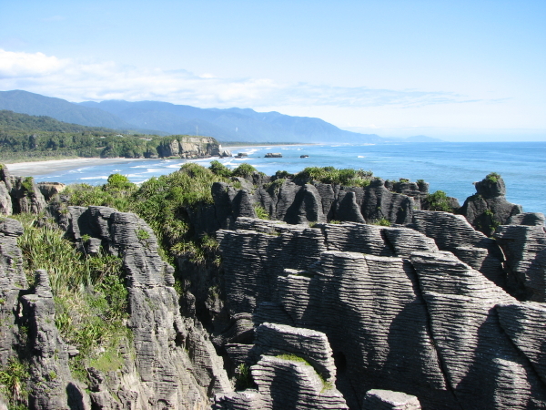 Besonders beeindruckt haben uns die sogenannten Pancake Rocks. Die Felsen sind vom Wasser und der Witterung so gestaltet worden, dass sie wie aufeinandergestapelte Pfannkuchen aussehen. Eine atemberaubende Landschaft.