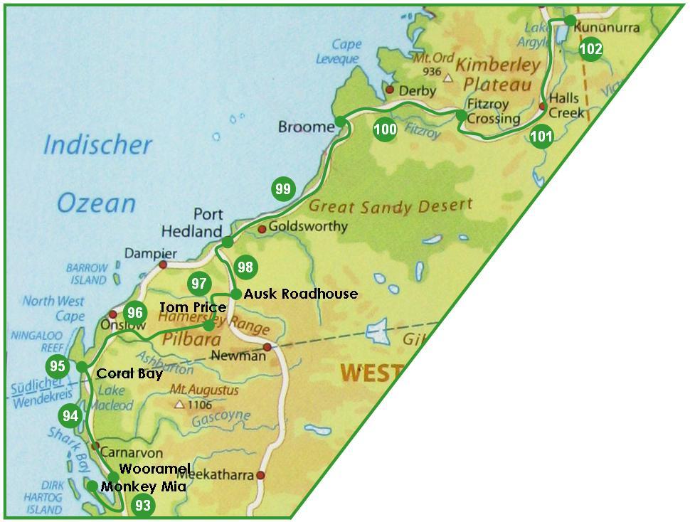 Die dritte Etappe führte uns von Monkey Mia nach Kununurra.
