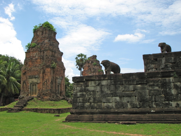 Am Tempel East Mebon stehen an allen Ecken Statuen von lebensgroßen
