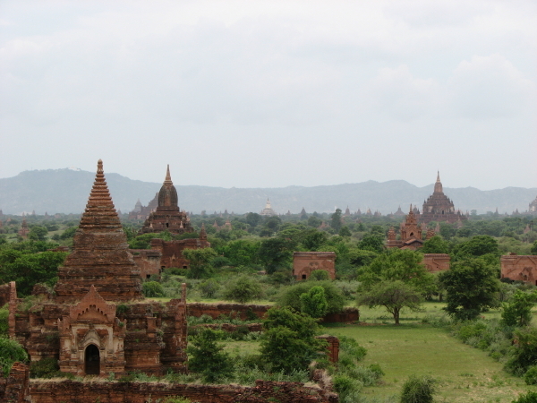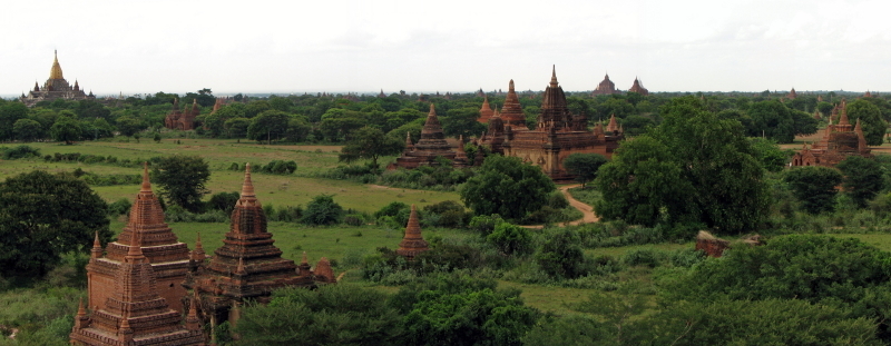 Pagoden und Bauten sich quer über das Areal von Bagan erstrecken. Man kann
