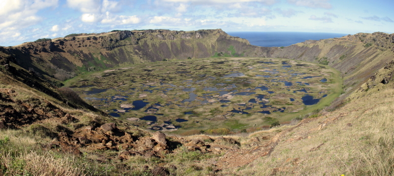 Spektakulärer See auf dem Vulkan Ranu Raraku ...