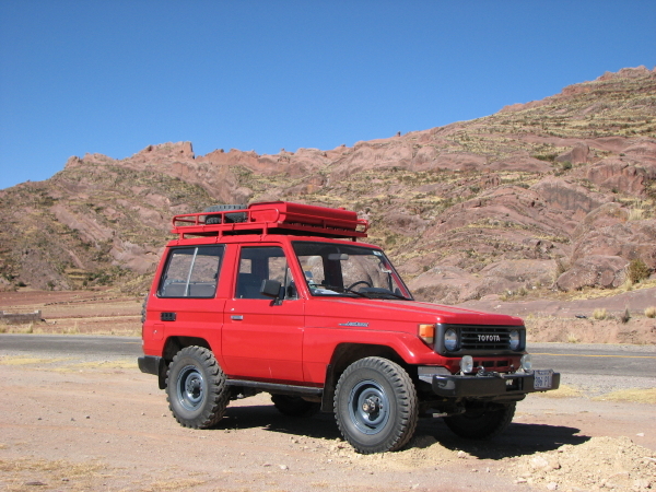 Der Rote: unser neues Gefährt, ein Toyota Landcruiser FJ70. Bemerkenswert