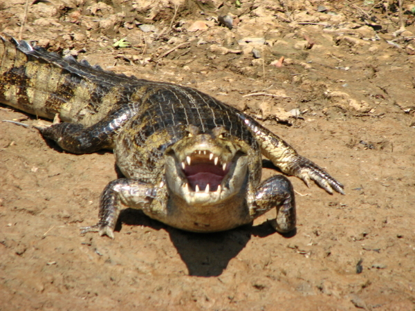 riesige Kaimane am Ufer. Auf die Frage, wieviele von den Tieren denn hier in der