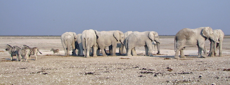 weiß wirken: die Etosha-Elefanten. Tagsüber plantschen sie in den