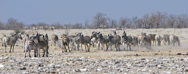 In Etosha gibt es Zebra-Herden mit mehr als hundert Tieren. Sehr imposant. Vor