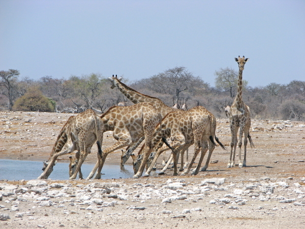 Auch die Giraffen haben sich in Richtung Wasser auf den Weg gemacht.