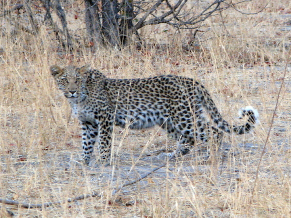 hätten wir den kleinen Leoparden fast überfahren. In der Dämmerung