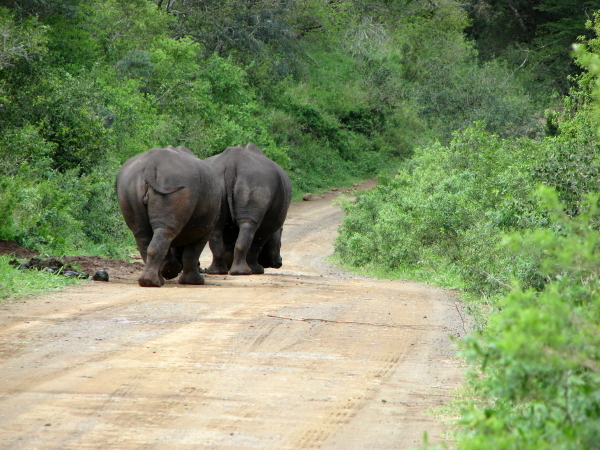 Da wartet man dann doch gerne, bis Familie Nashorn die Straße überquert hat ... ;-)
